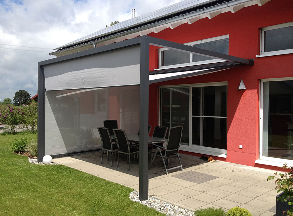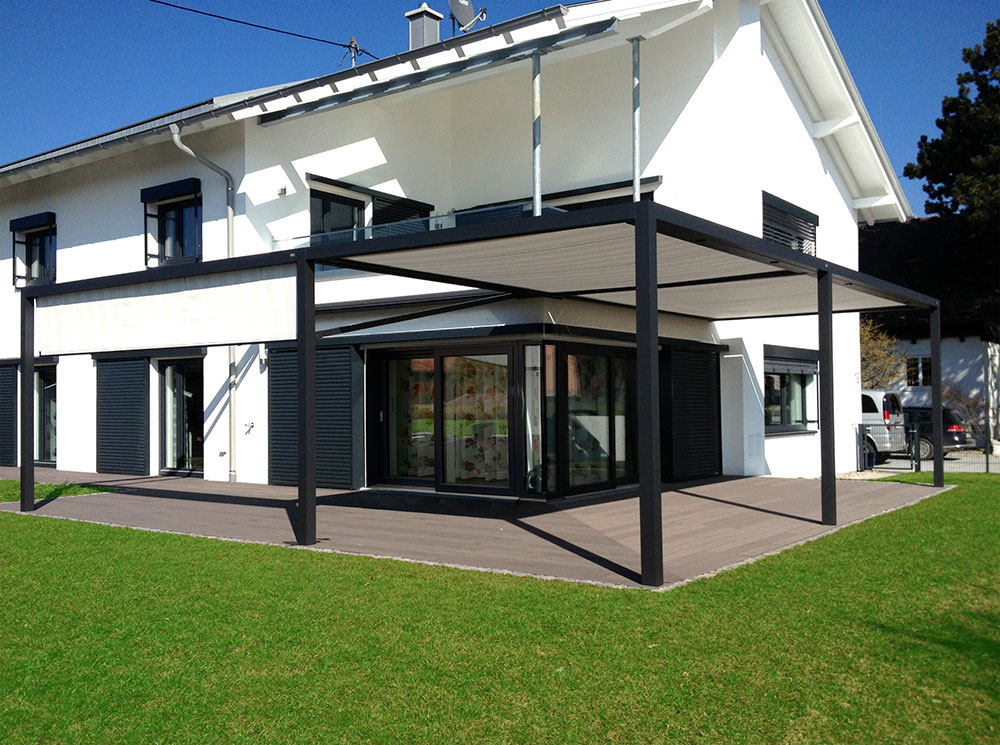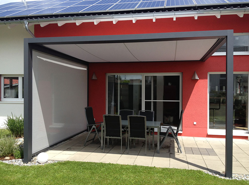Das außergewöhnliche, neuartige Beschattungssystem Q.bus erfüllt höchste Designansprüche und passt ideal zu moderner Architektur. Es ermöglicht eine enorme Vielfalt an Beschattungsvarianten – ob privat genutzt oder in der Gastronomie, freistehend oder an eine Fassade montiert sowie beliebig erweiterbar für Ecklösungen und andere Formen. Die Anlage wird durch Elektromotoren – wahlweise per Funk – gesteuert.